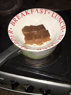 Pop it back in the fridge for it to set and start on your topping. This is where you can decide how much white chocolate you want on top. I personally melted half a bar but I think the whole bar might have been more effective in appearance but either way, melt your white chocolate exactly the same as you did the milk.